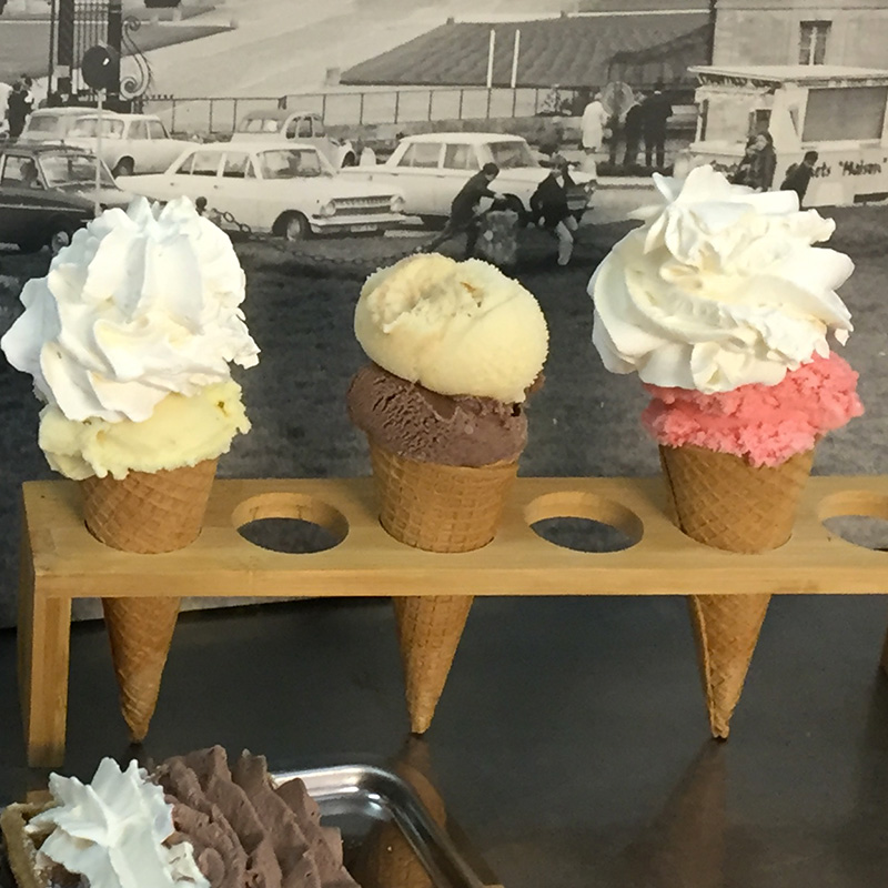 La Maison « Chantilly Glaces Trueba » est fondée en 1930. Cette période nous ramène aux générations fondatrices des glaces toujours présentes à Chantilly. Avant c’était à vélo, à moto, en charrette, à cheval !